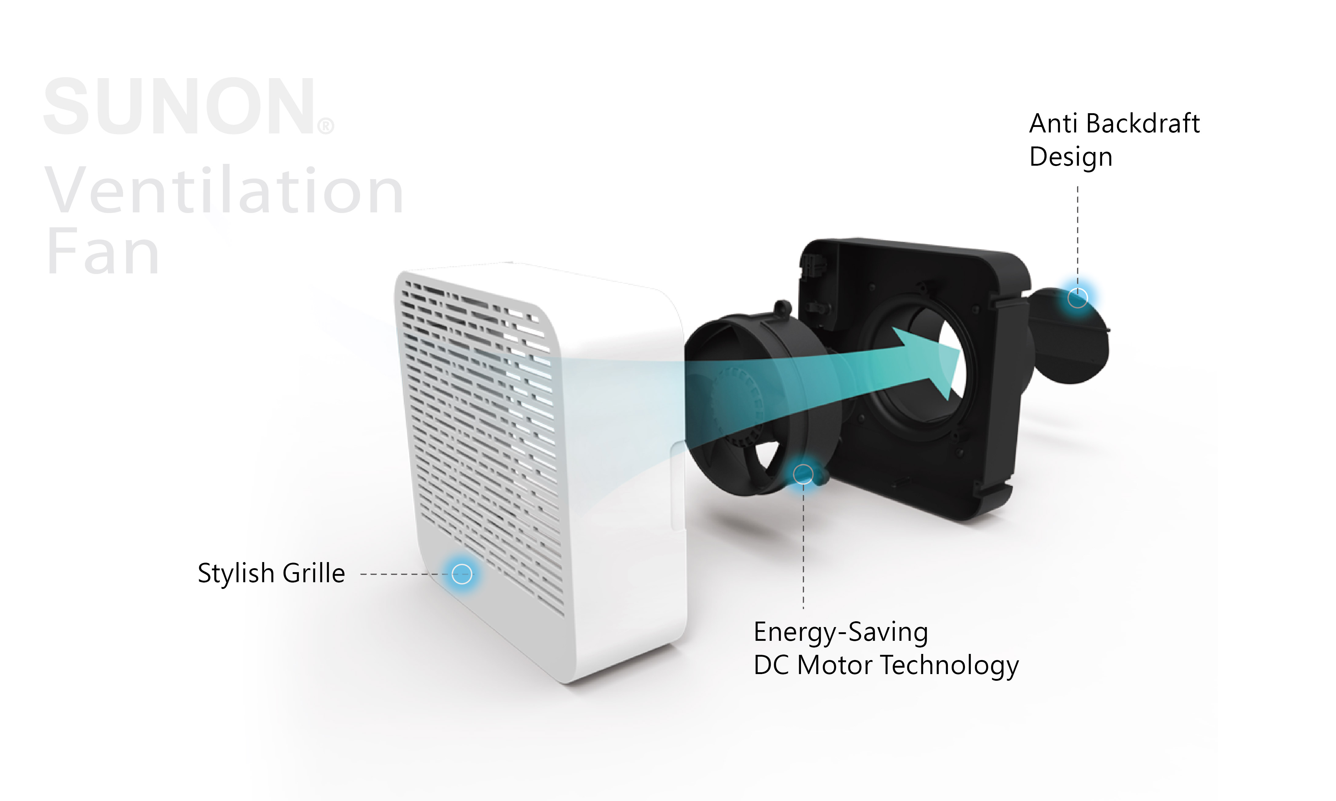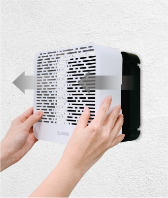 Different from the traditional wall-mounted fan, SUNON ventilation fan is displayed its fan body to space. The fan is designed with a round hole to make the product more low-key and delicate, so that the home space not only maintains the beauty but also bring in the fresh air.