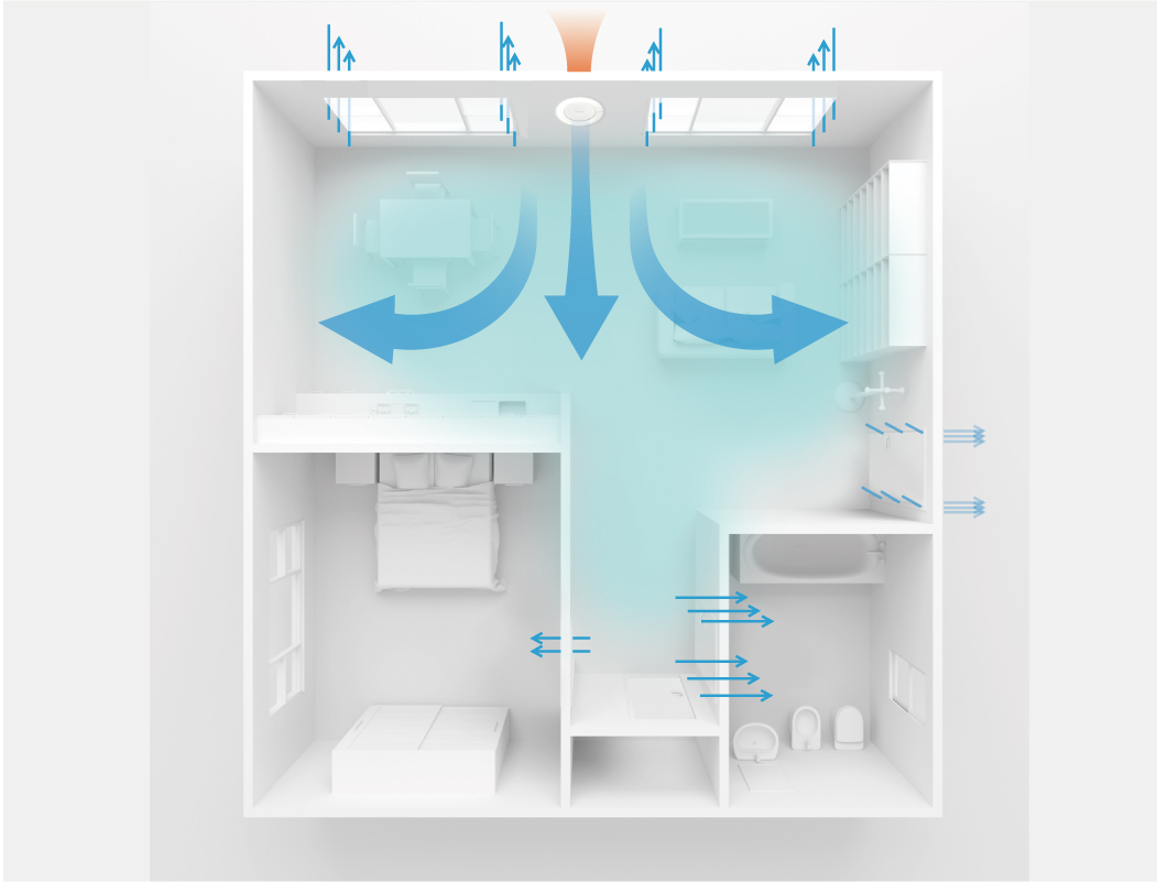 Vent in your house by injecting fresh outdoor air, the clean air will flows and generates a positive pressure environment, positive pressure will help and push the room stale air out through the leakages or openings. Meanwhile, blocks the outdoor PM2.5 and other pollutants from getting into your house.