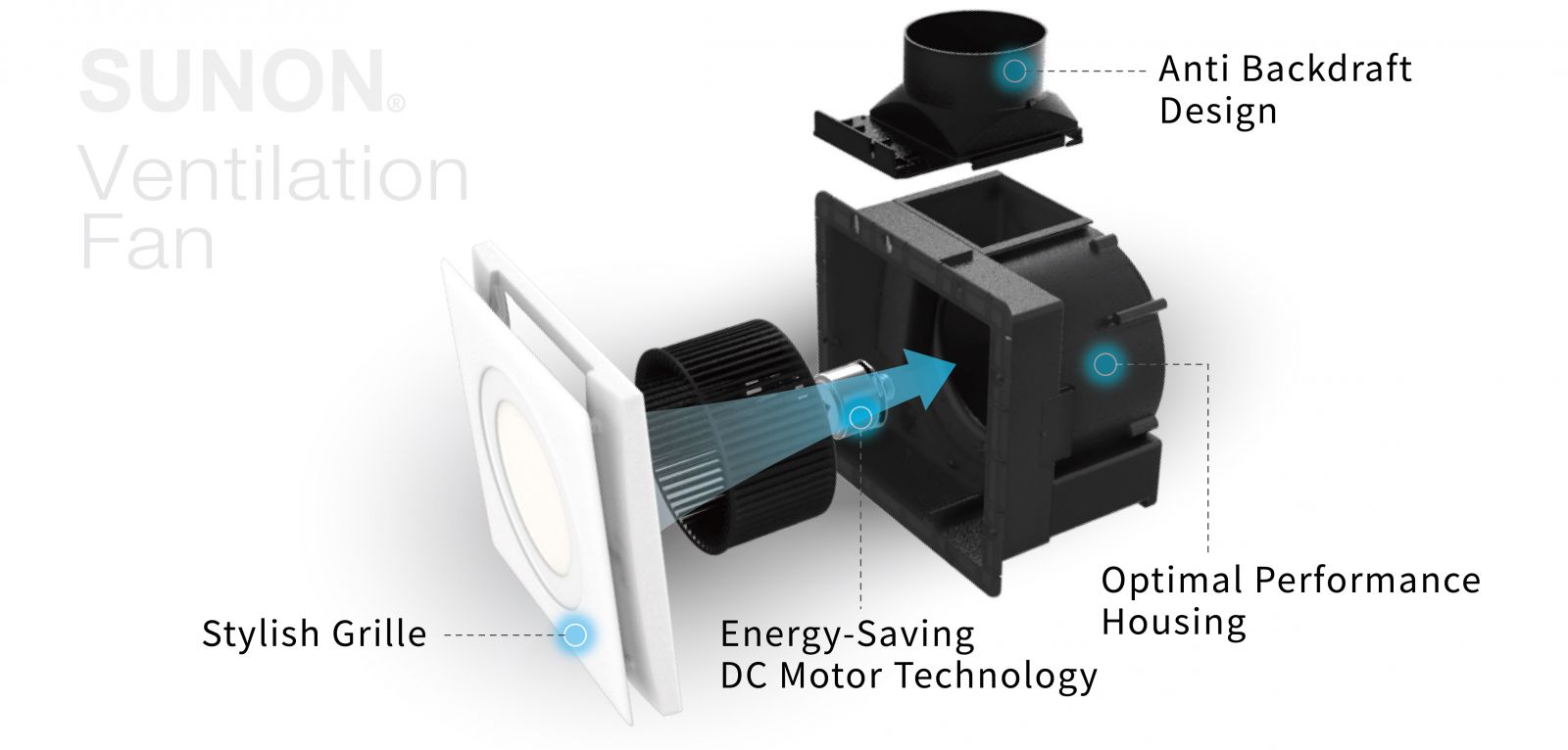 Leading the Ventilation Fan Industry by Continuously Innovating The SUNON Eco Ventilation product series features an new beautiful ventilation aesthetic. Today’s new generation home products have morphed into sophisticated home décor. SUNON’s core product technology is derived from the result of SUNON’s 36 years of state-of-the-art development in DC motor technology. Meeting the need for building ventilation, a series of super energy-saving DC ventilation fans have been developed. 80% energy saving, quiet, water-proof and fire-proof, this product was designed to create a healthy and comfortable eco friendly house life. The SUNON series minimalist style and novel design challenge the harsh traditional ventilation shape by translating it into a concise aesthetic for a modern home. |