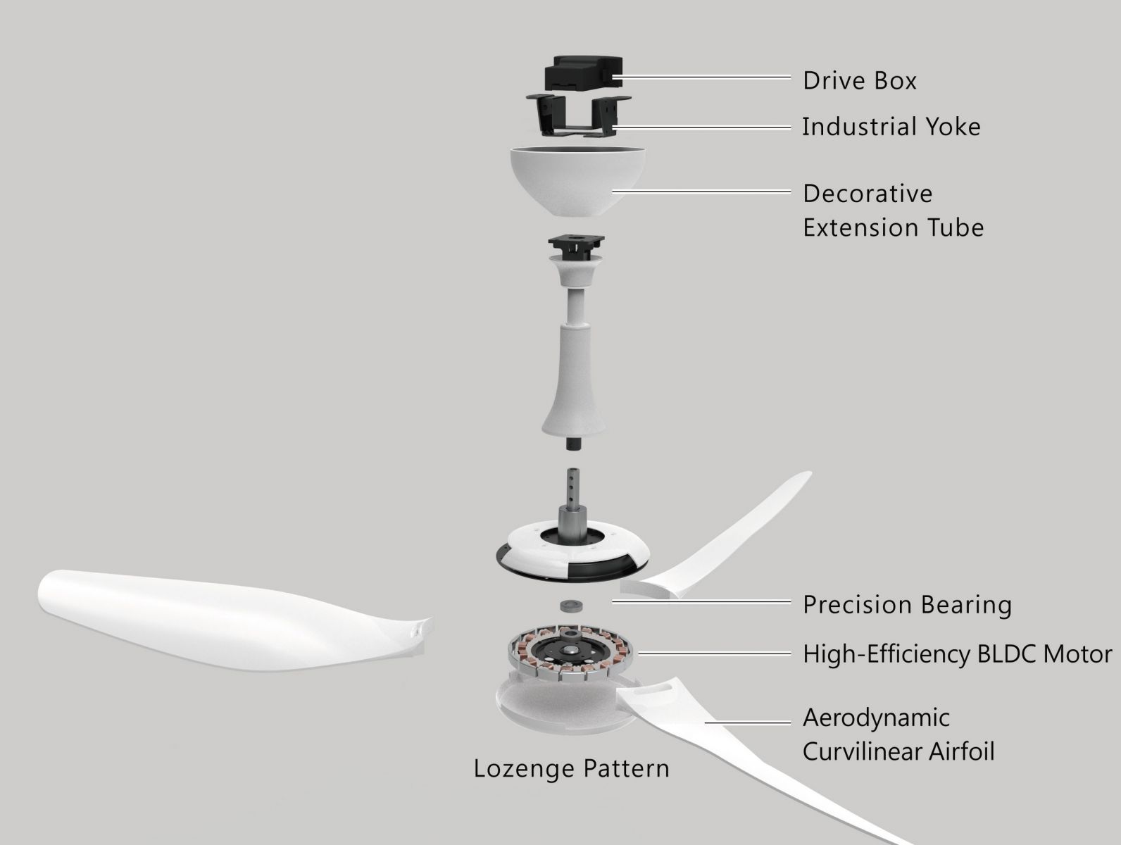 The ultra-high torque motor can generate massive air at low speed by the curvilinear airfoil,creating a relaxing and peaceful atmosphere in your house.