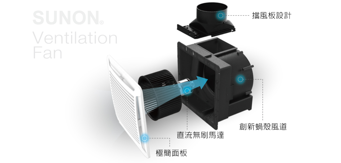 『SUNON綠能換氣產品』是源自於建準集團多年來專注直流馬達技術的研發,針對建築通風需求,開發一系列超節能直流換氣扇,以更節能 80%、靜音、防水等高技術下,提供民眾安全、健康、舒適、節能的通風產品,打造健康舒適、綠色居家生活!產品以「極簡」風格、新穎現代感的設計為初衷,顛覆傳統通風生硬外型轉換為時尚簡約的美感呈現給現代化居家,讓產品不再只是產品,幻化成居家裝飾品。